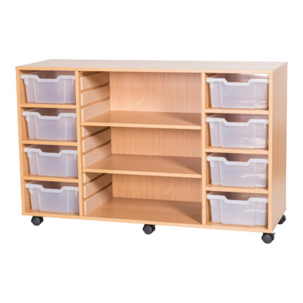 Mobile 8 Deep Tray & Shelf Unit Beech Kiwi Trays