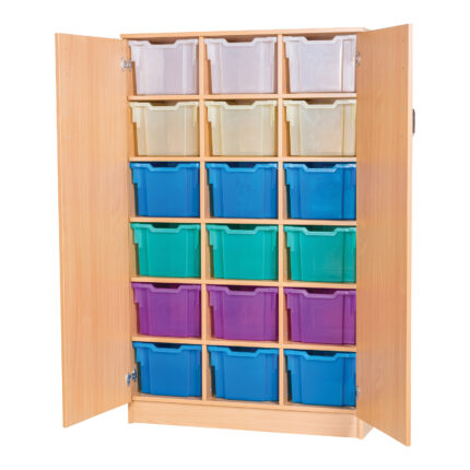 Static 18 Bay Cupboard Beech Finish Multi Trays