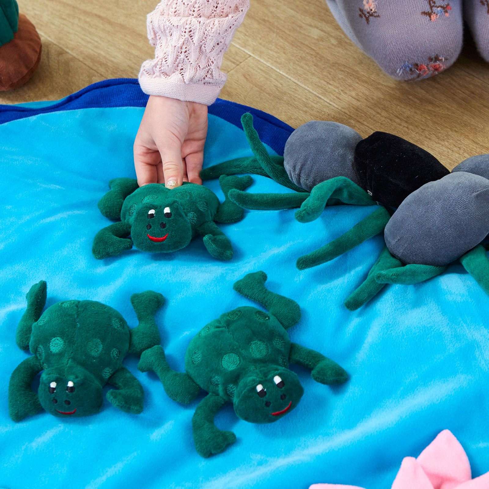 Includes movable objects such as frogs, fish, logs and pond plants.