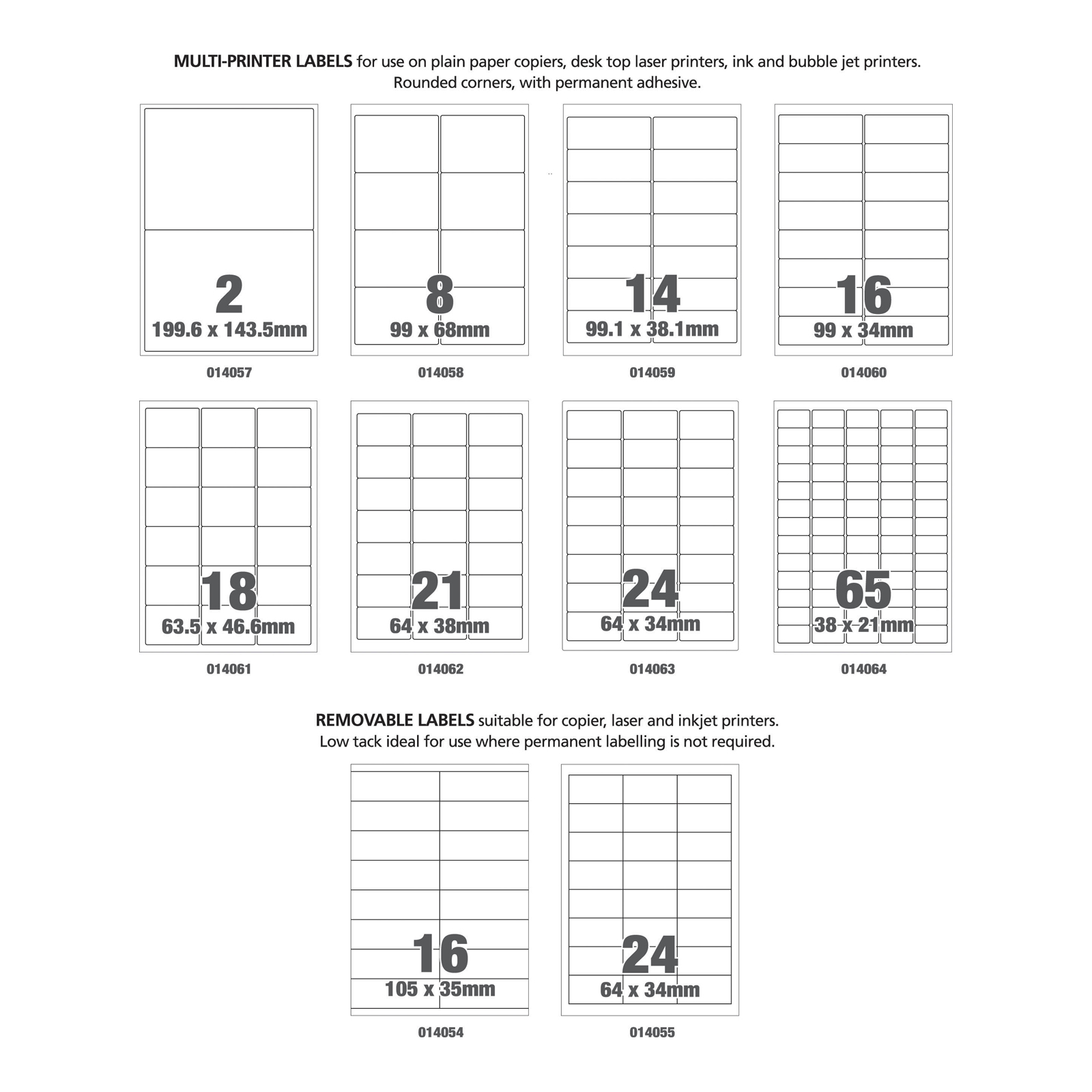 Multi-Printer Labels 100pk H21 x W38mm