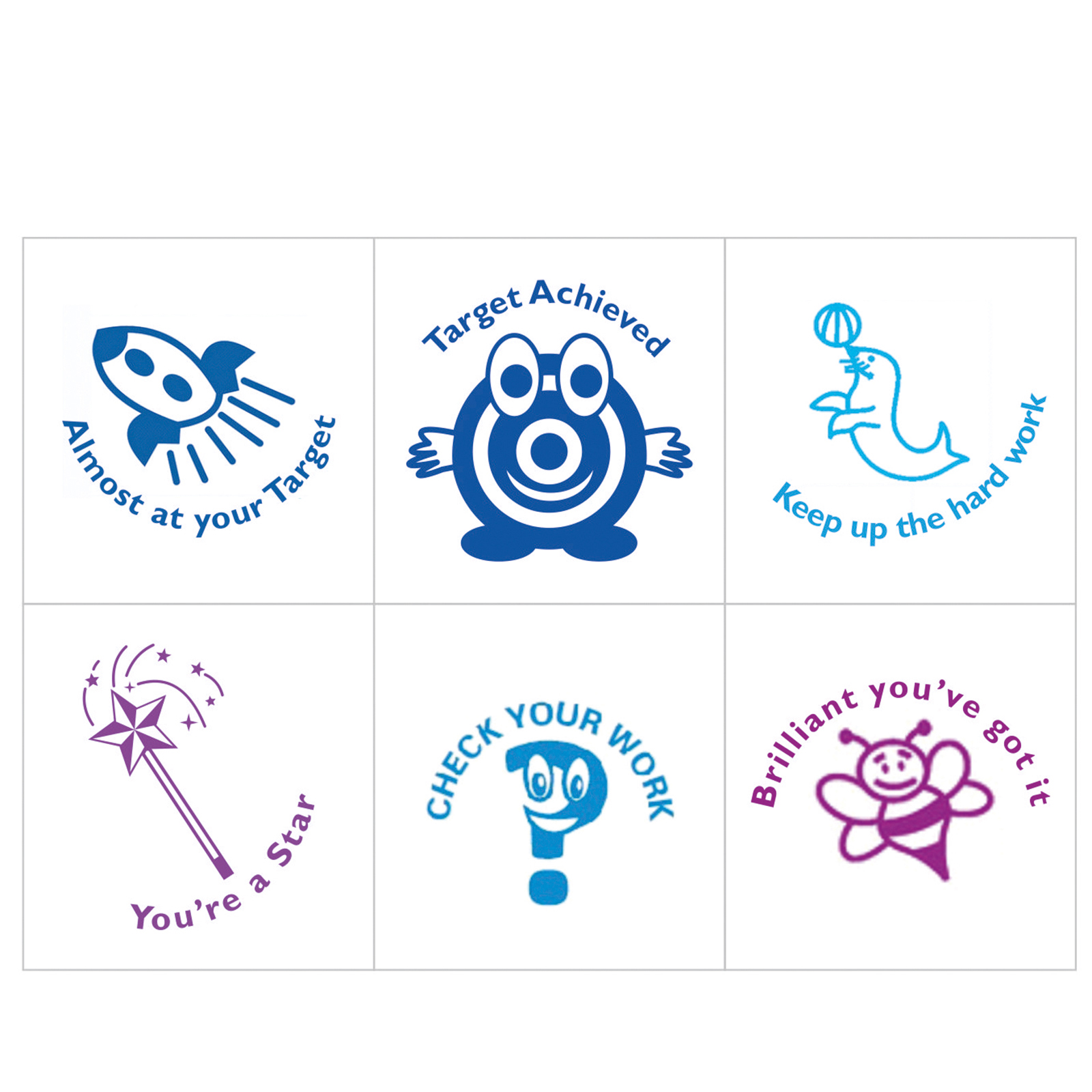 Save time when marking your work with this set of pre-inked stampers all stored in a handy box.