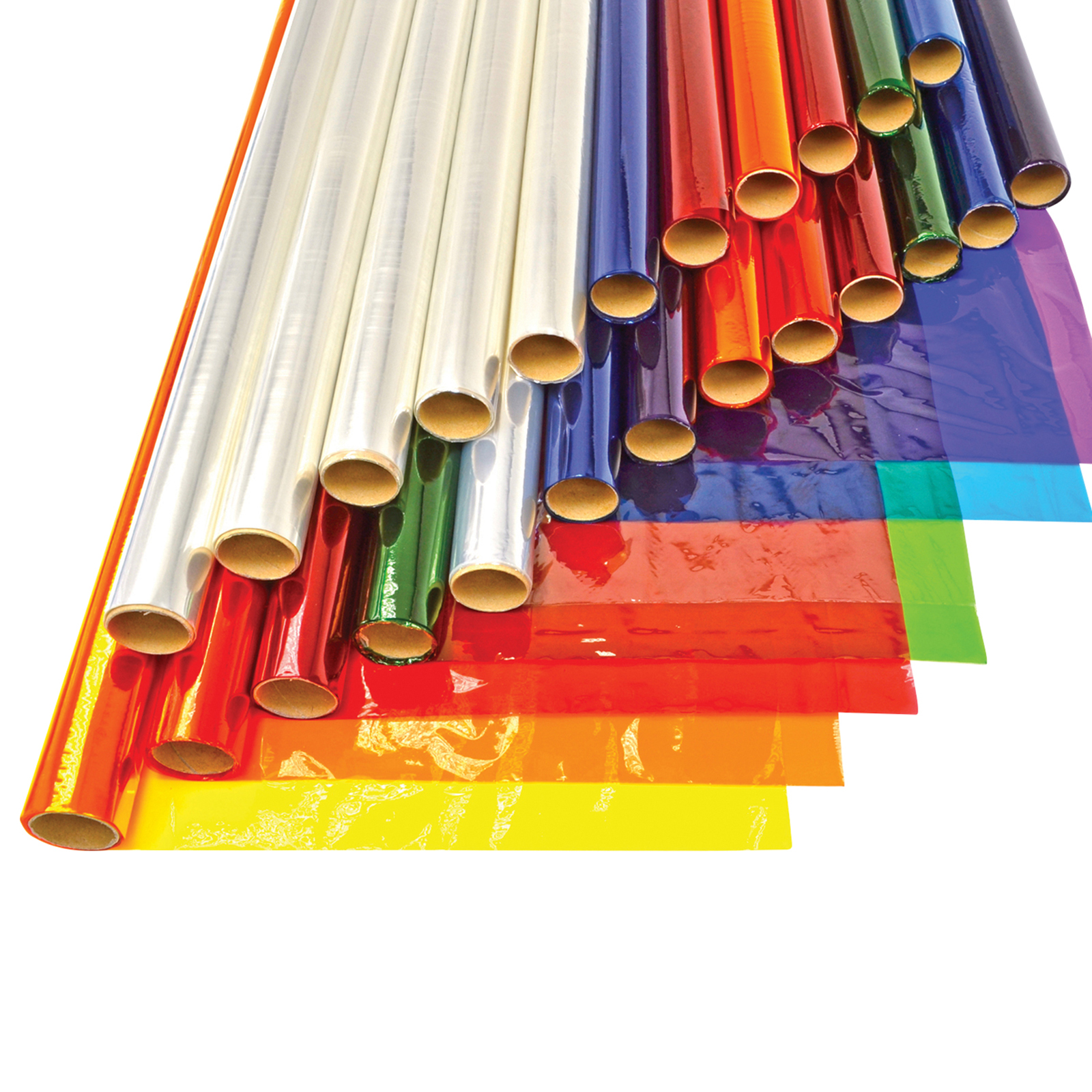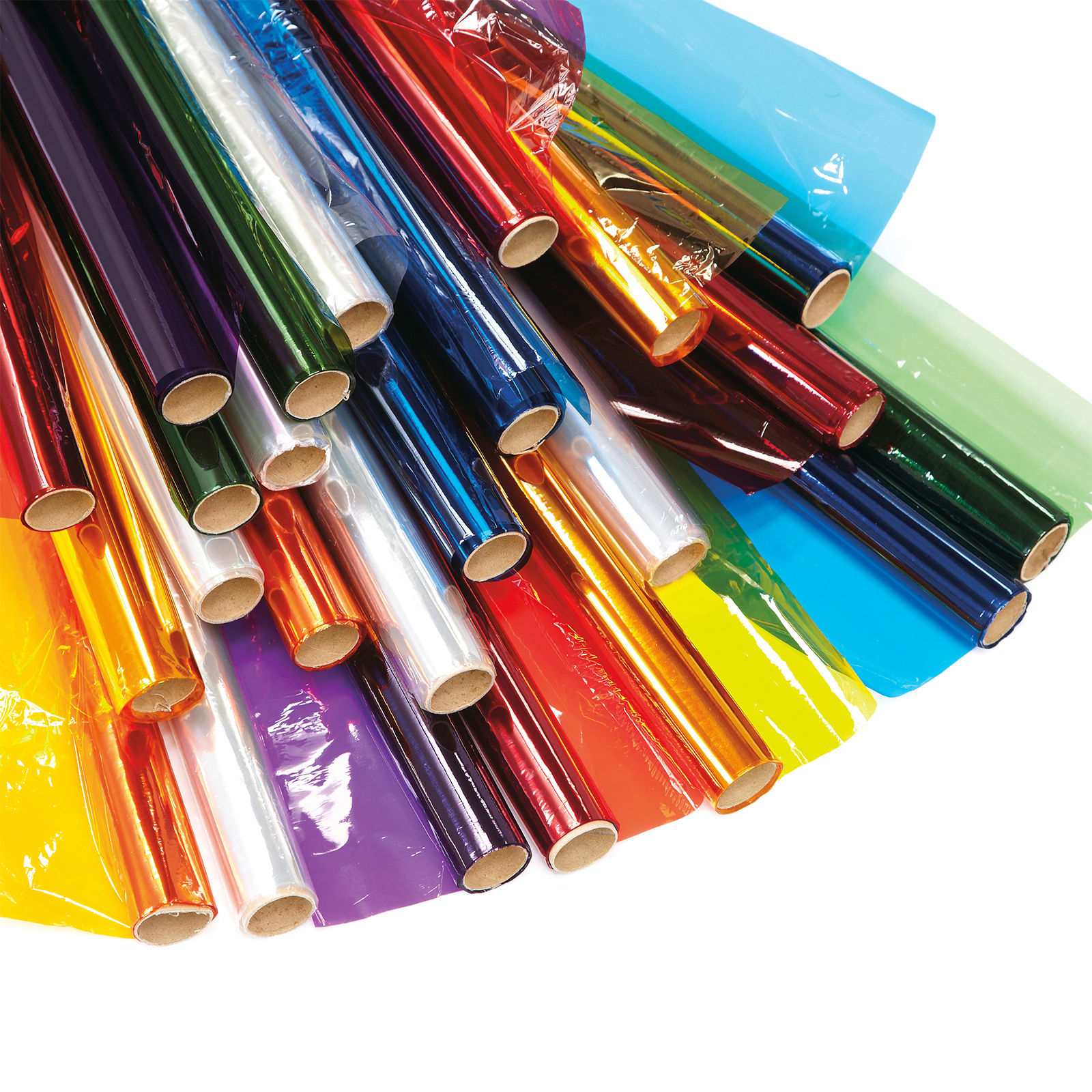Bumper pack of assorted coloured cellophane rolls in bright, jewel colours.
