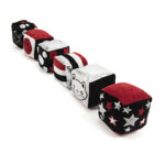 A set of soft cubes, each with a lovely design.