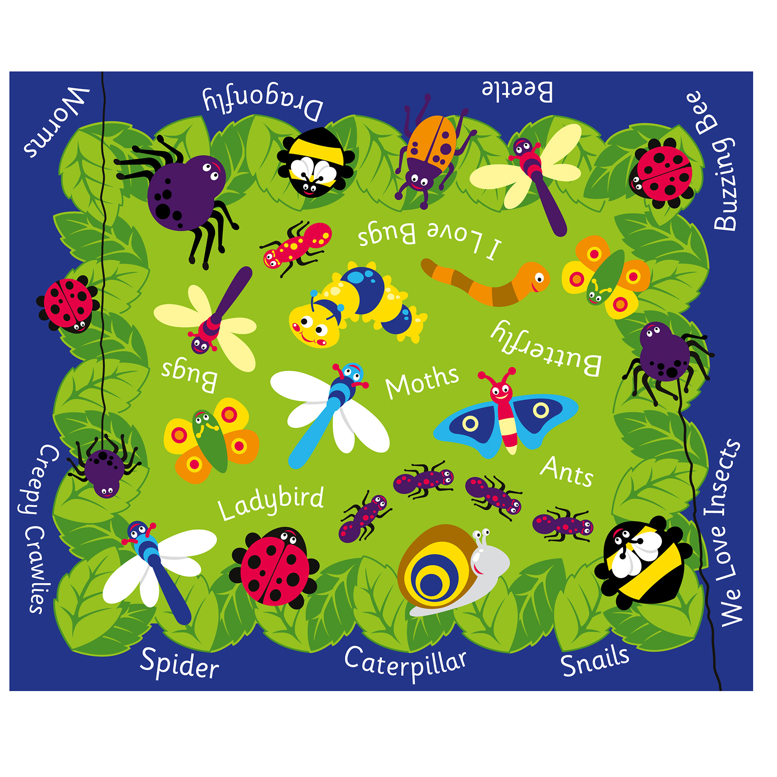 A fun and interesting rug to help children learn about insects found in our environment.
