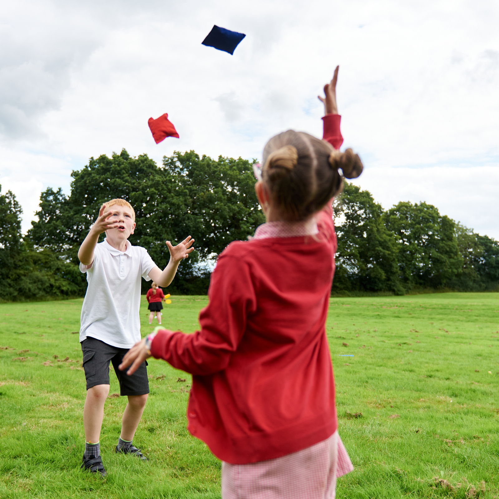 These soft, brightly coloured cotton beanbags are double stitched and are filled with plastic pellets.
