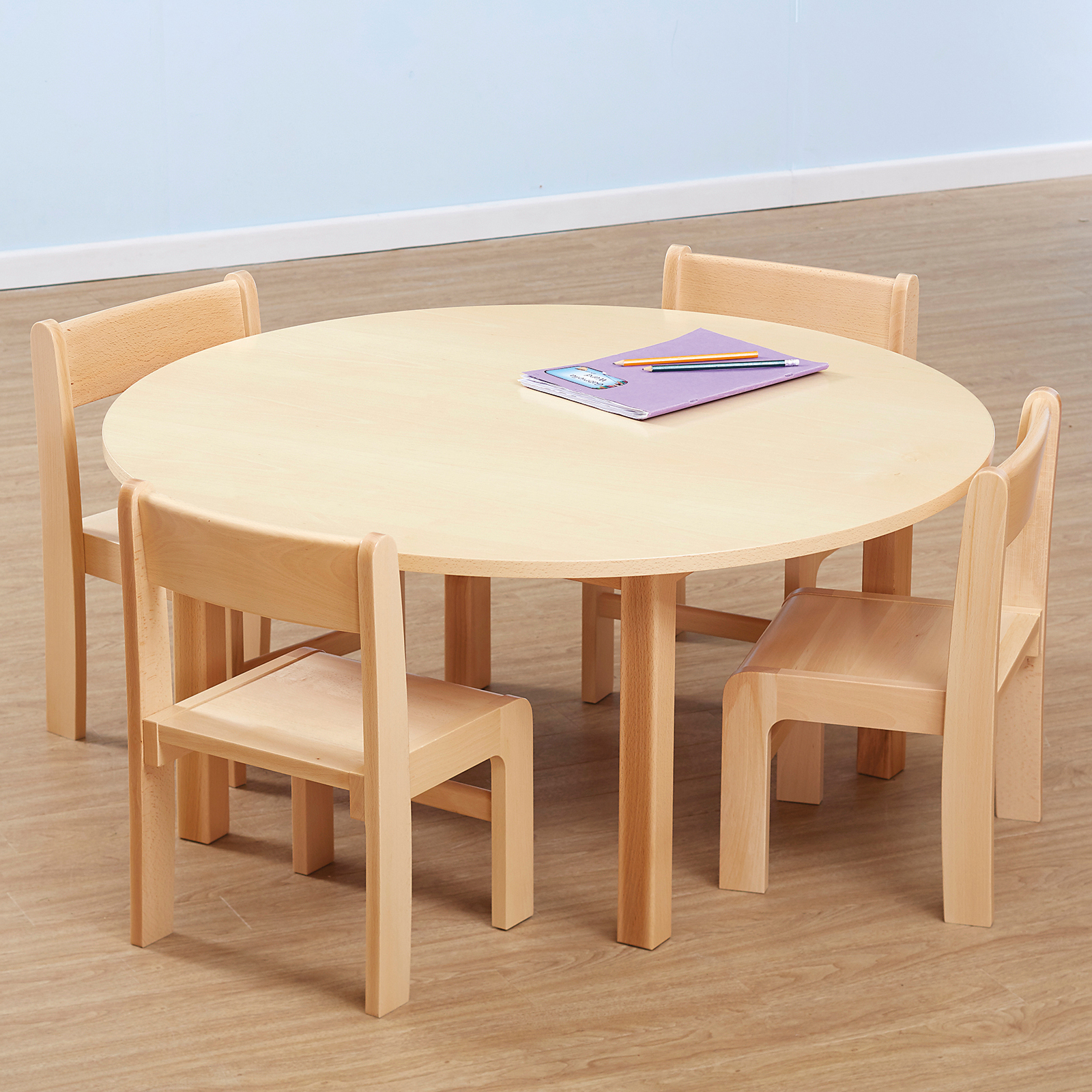 Classic wooden table and chairs set, ideal for nurseries and early years settings.