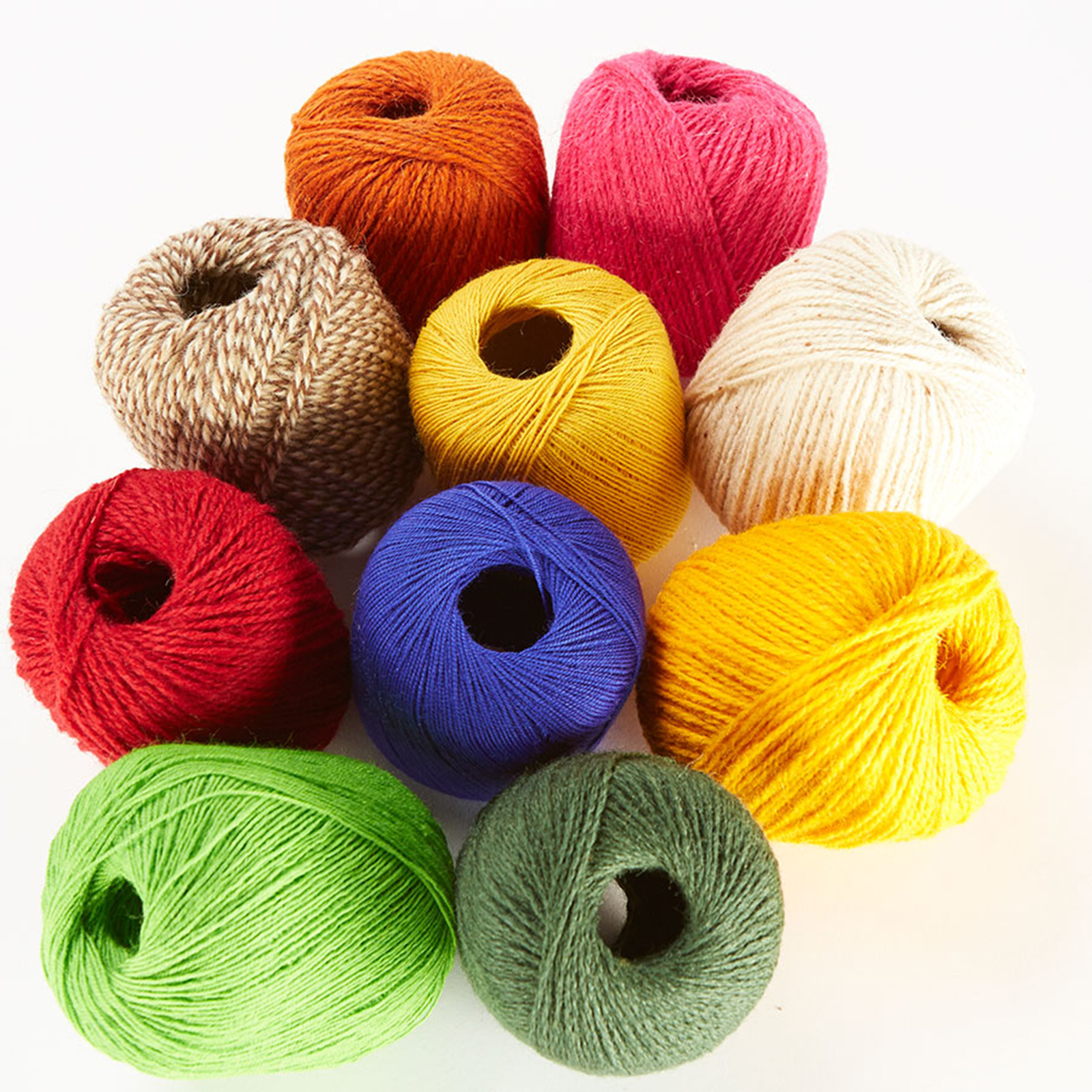 A fantastic selection of spooled yarns in a wide assortment of textures and colours.
