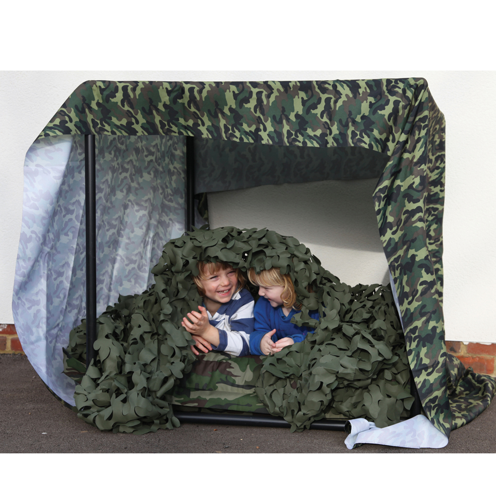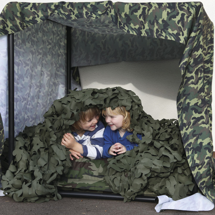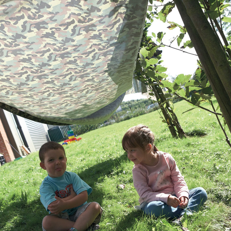 Encourage imaginative play as children cooperate and construct their own dens.