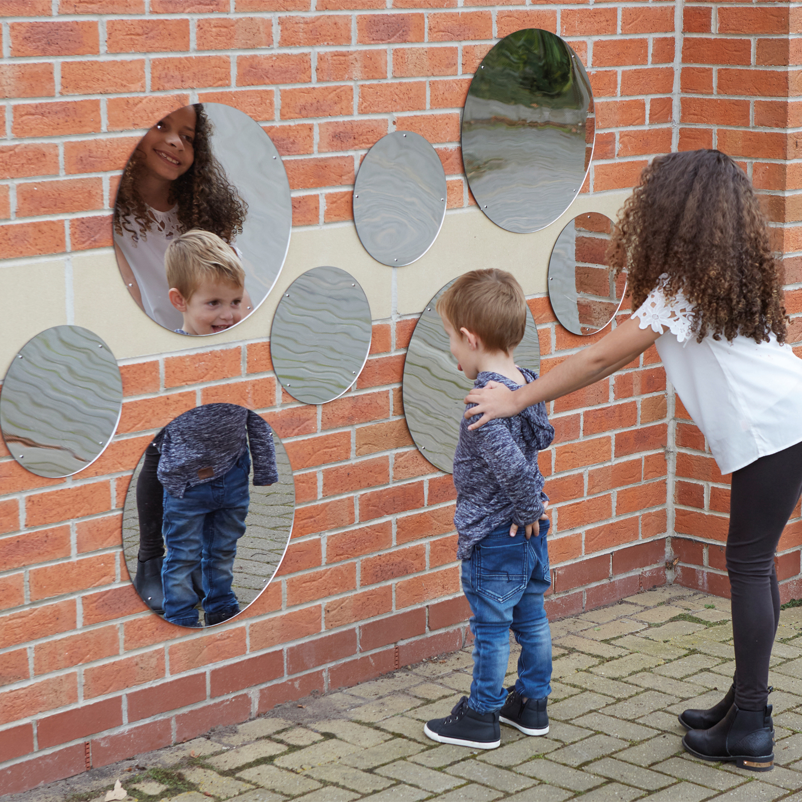 Create an eye-catching display using these different sized mirrors.
