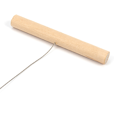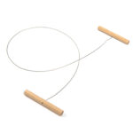 Braided steel wire for cutting clay and dough with wooden handles on both ends.