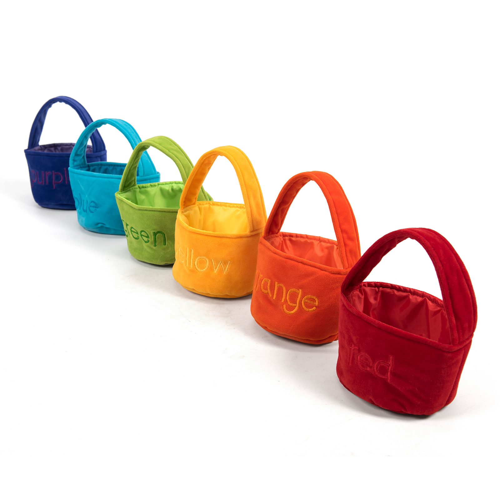 Children will love matching the various tactile items into the six fabric shopping baskets.