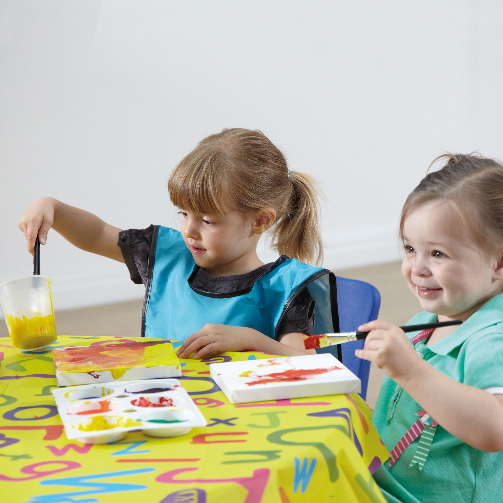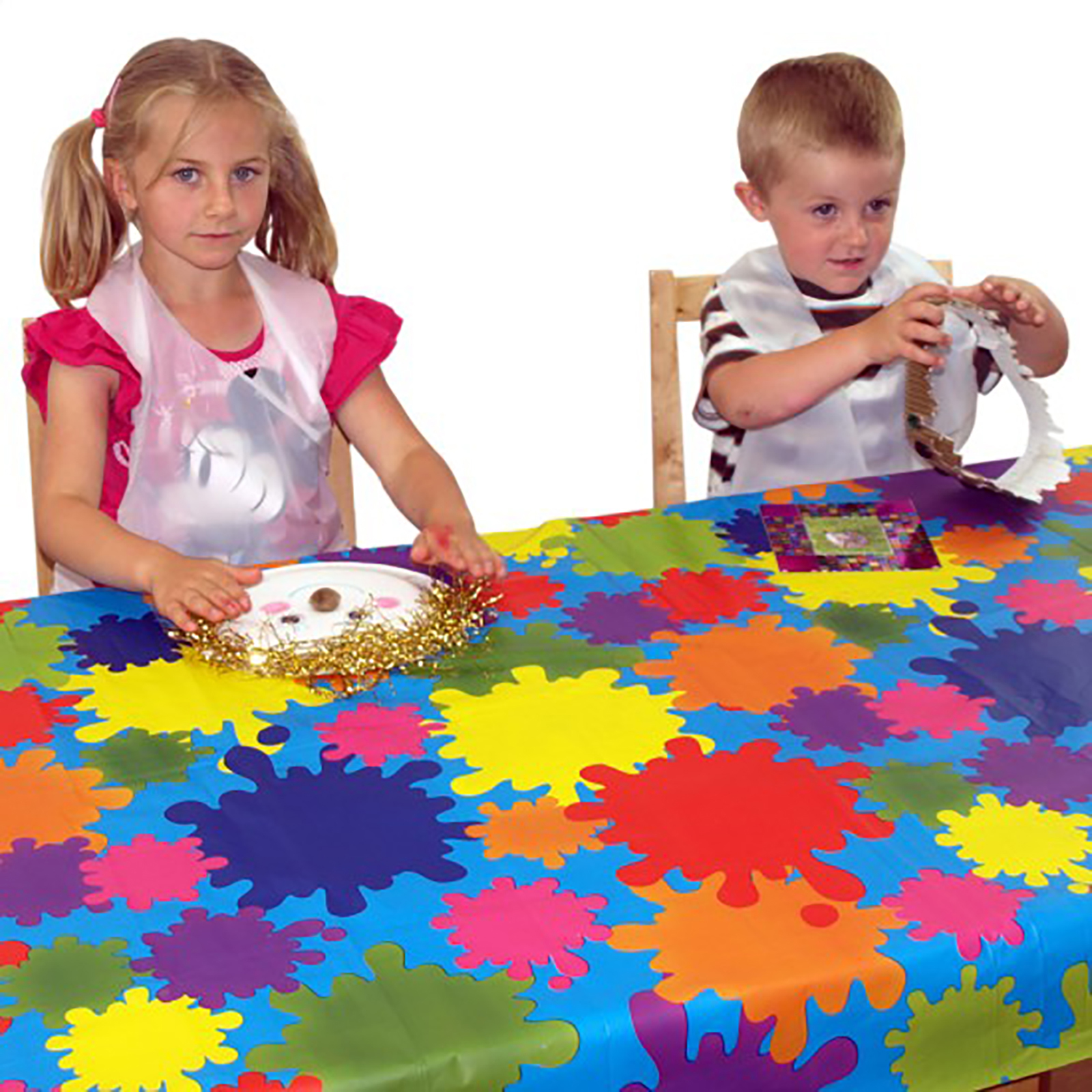 Pack of colourful, light weight, easy clean plastic table covers.