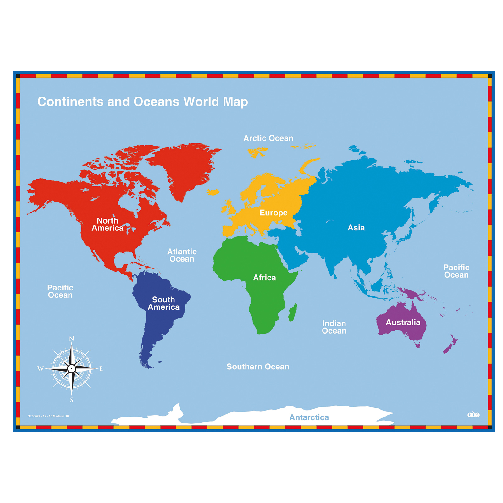 Continents and Oceans Map 80 x 60cm Vinyl