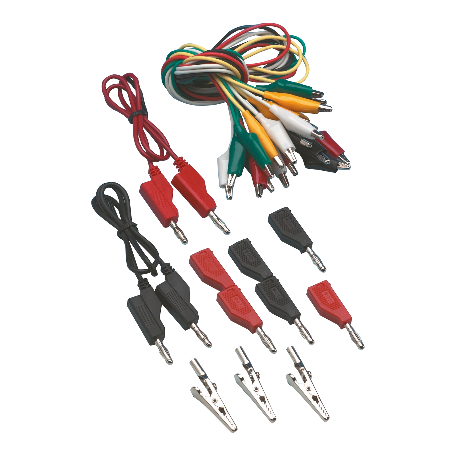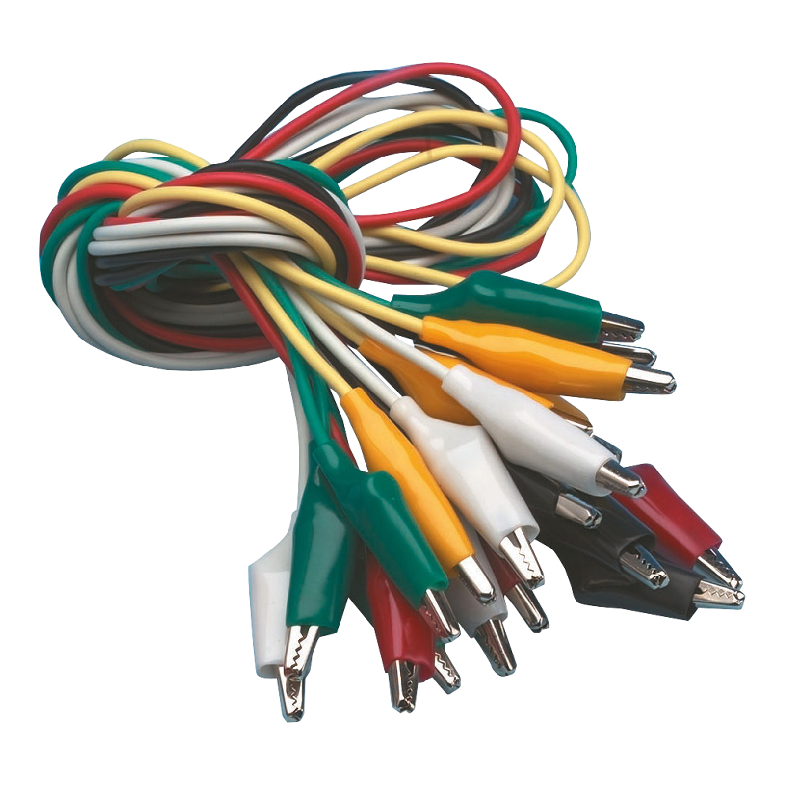 A set of 10 leads with plastic insulated miniature crocodile clips at each end.