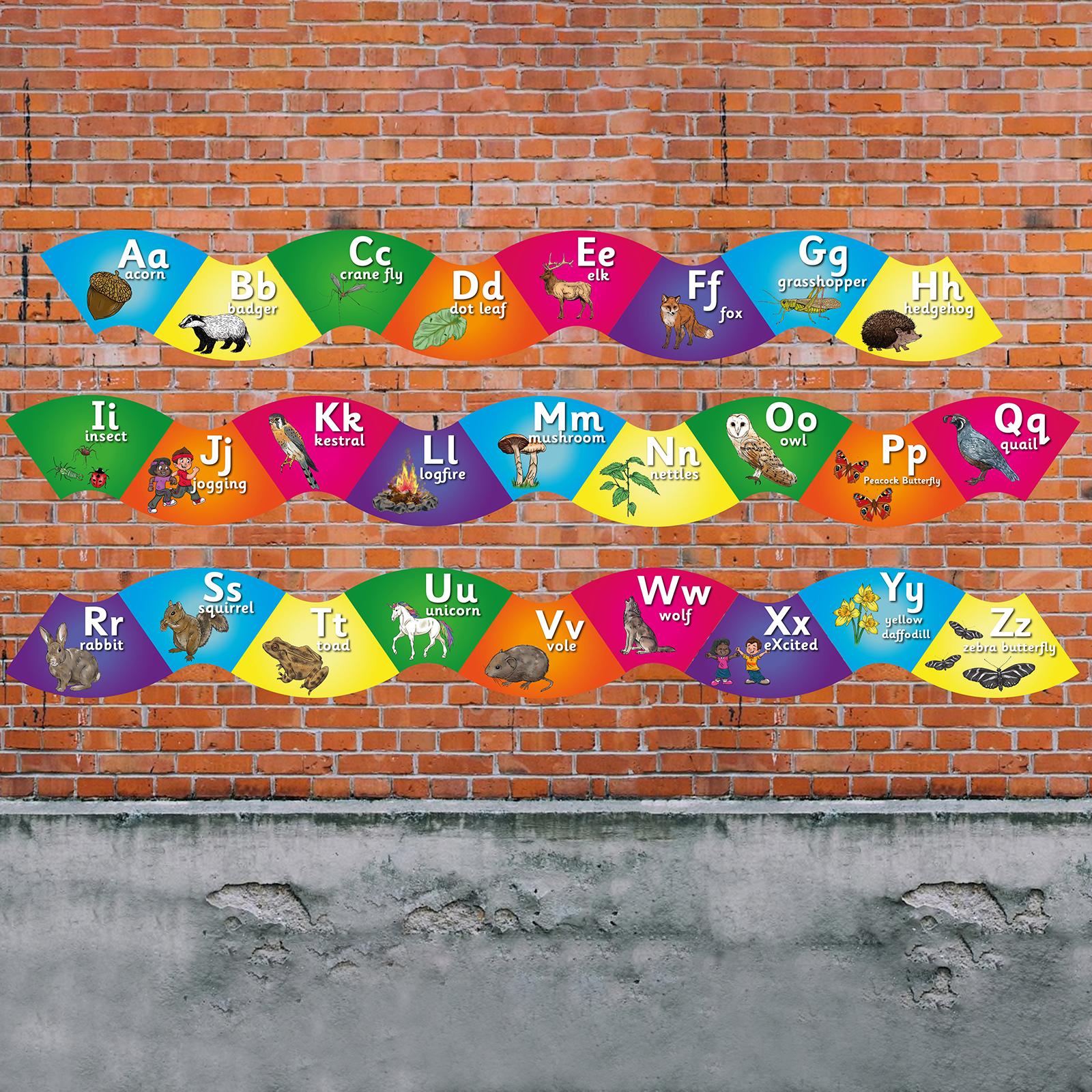 Each curvy sign introduces both the upper and lowercase letters.