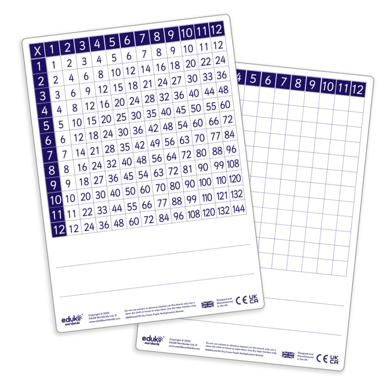 Dry Erase Pupils’ A4 Multiplication Boards