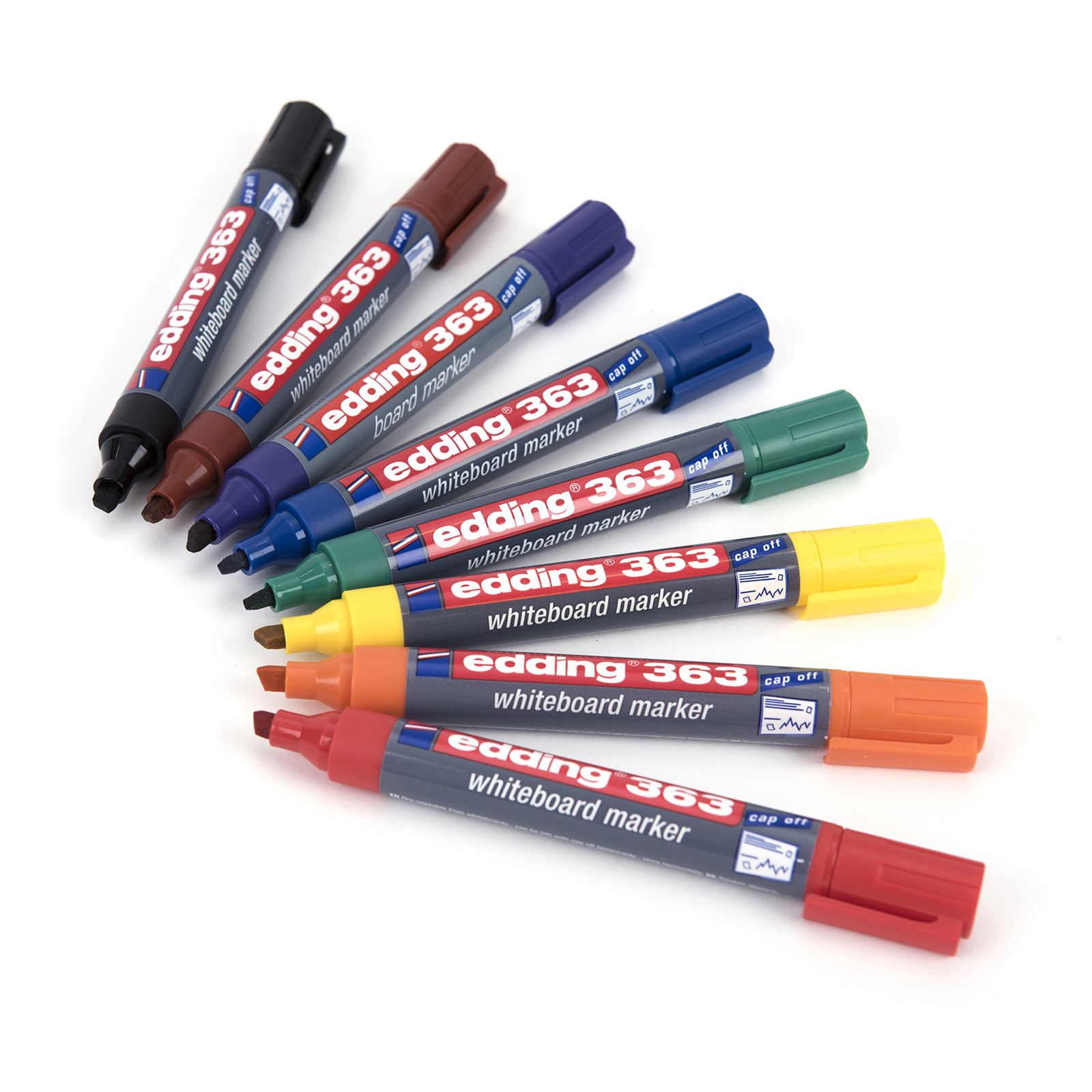 The Edding 363 Whiteboard Marker has a chisel tip with a line width of 1 – 5 mm, and is great for tasks that require bold and free-flowing writing.