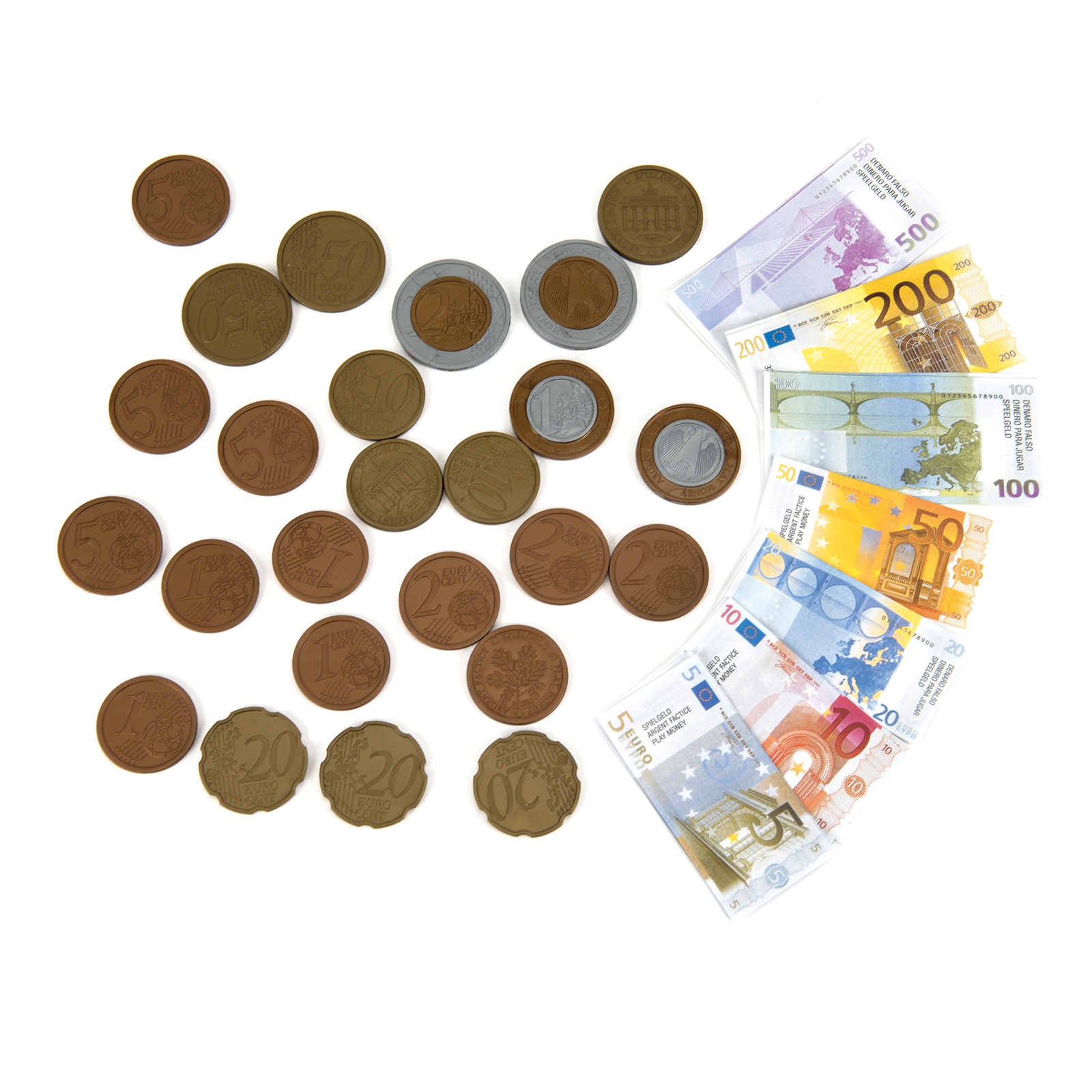 Set of accurate, replica Euro notes and coins.