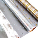 Transparent cellophane rolls for winter and festive displays.