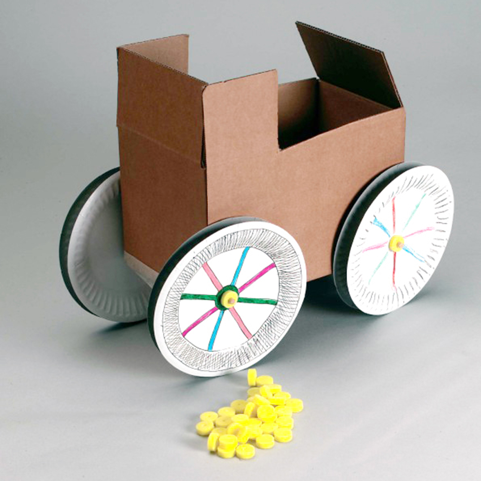 These 15mm foam end stops are used to keep wheels in place on our 5mm dowel.