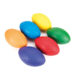 Set of high quality, brightly coloured, foam rugby balls.