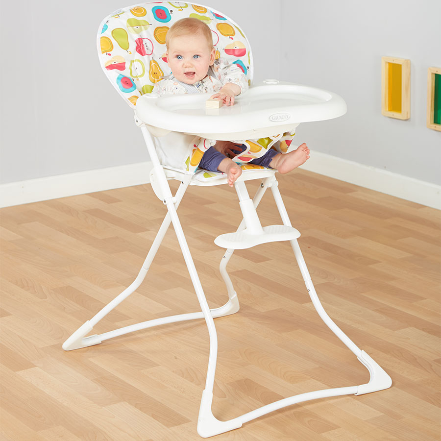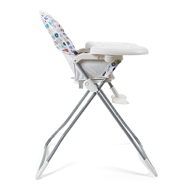 A handy high chair, perfect for saving space with its folding design allowing it to be folded flat during storage.