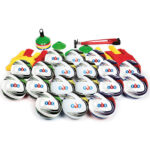 A complete kit includes match and training balls, bibs, cones, and accessories