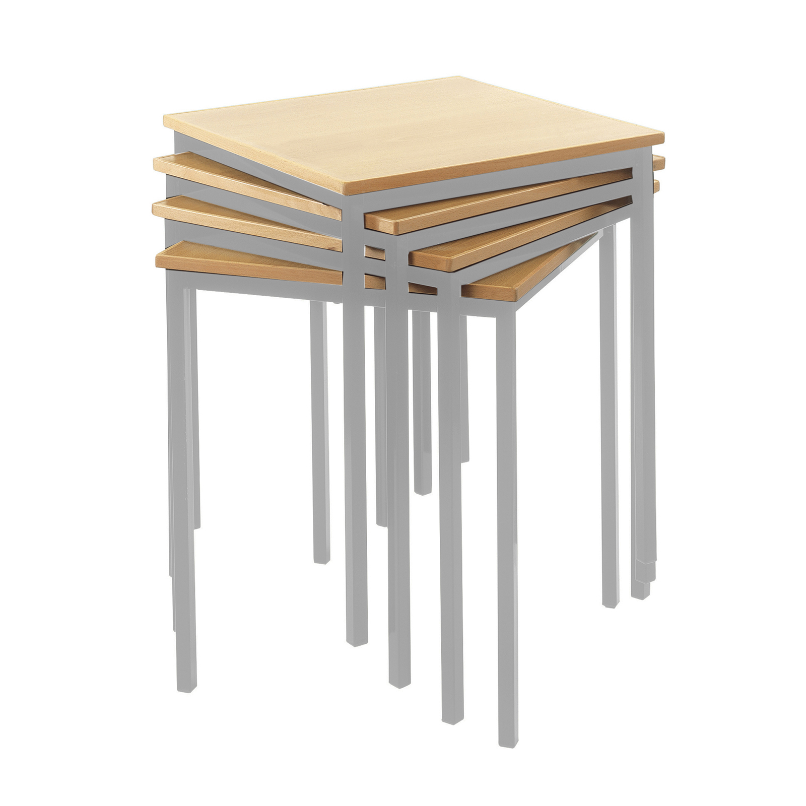 Standard classroom tables in different sizes and colours.
