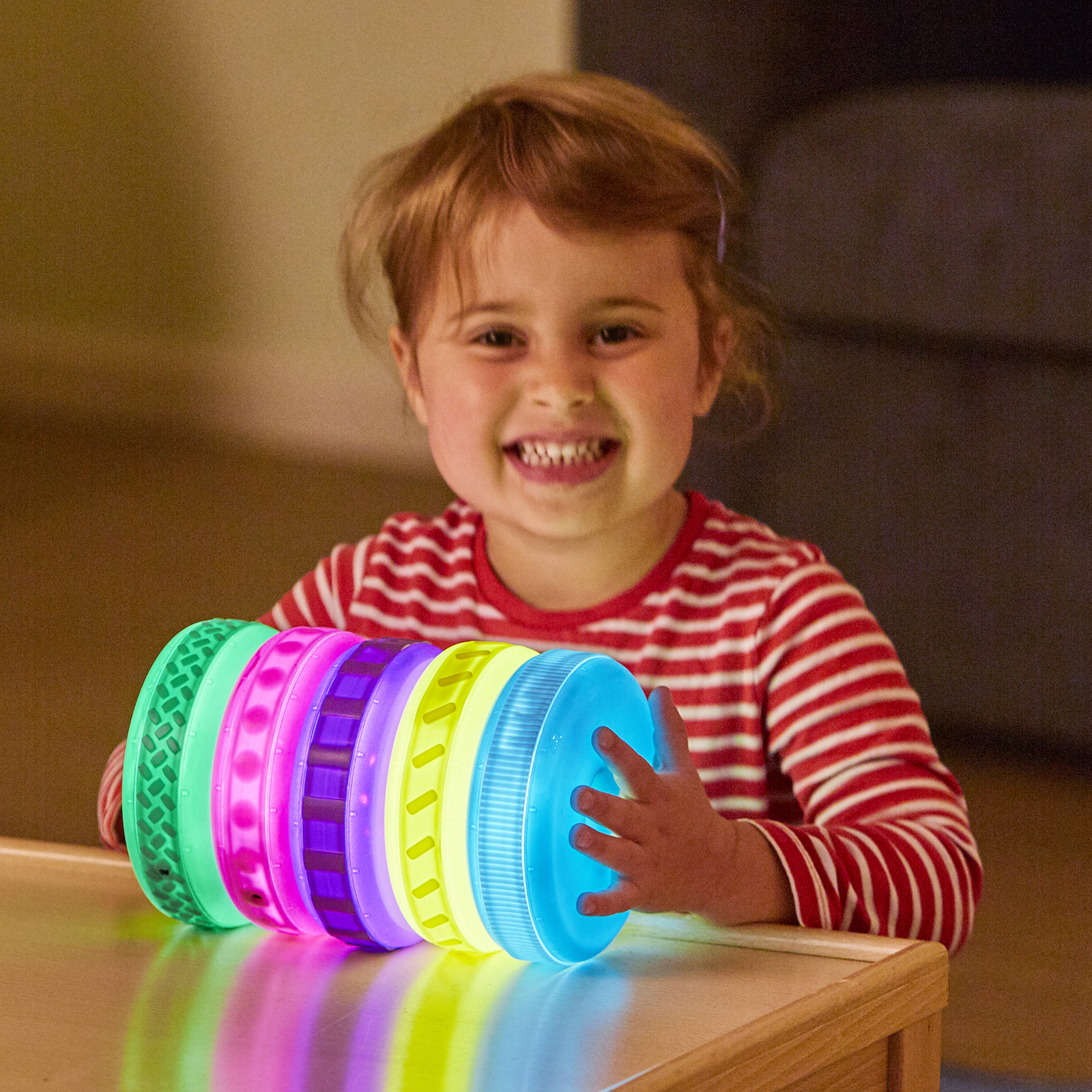 Each disc features a different textured band for heightened sensory appeal