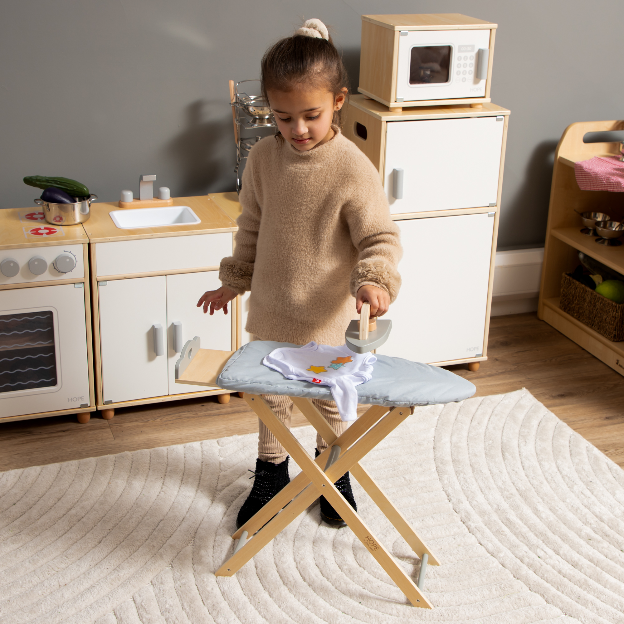 The Grey Ironing Board and Iron from Hope Education is a delightful addition to imaginative play. Crafted for little homemakers, this set sparks creativity and role-playing adventures. The grey ironing board, paired with a charming toy iron, provides a realistic and safe way for children to mimic everyday activities. Foster fine motor skills, imagination, and a sense of responsibility with this engaging play set.