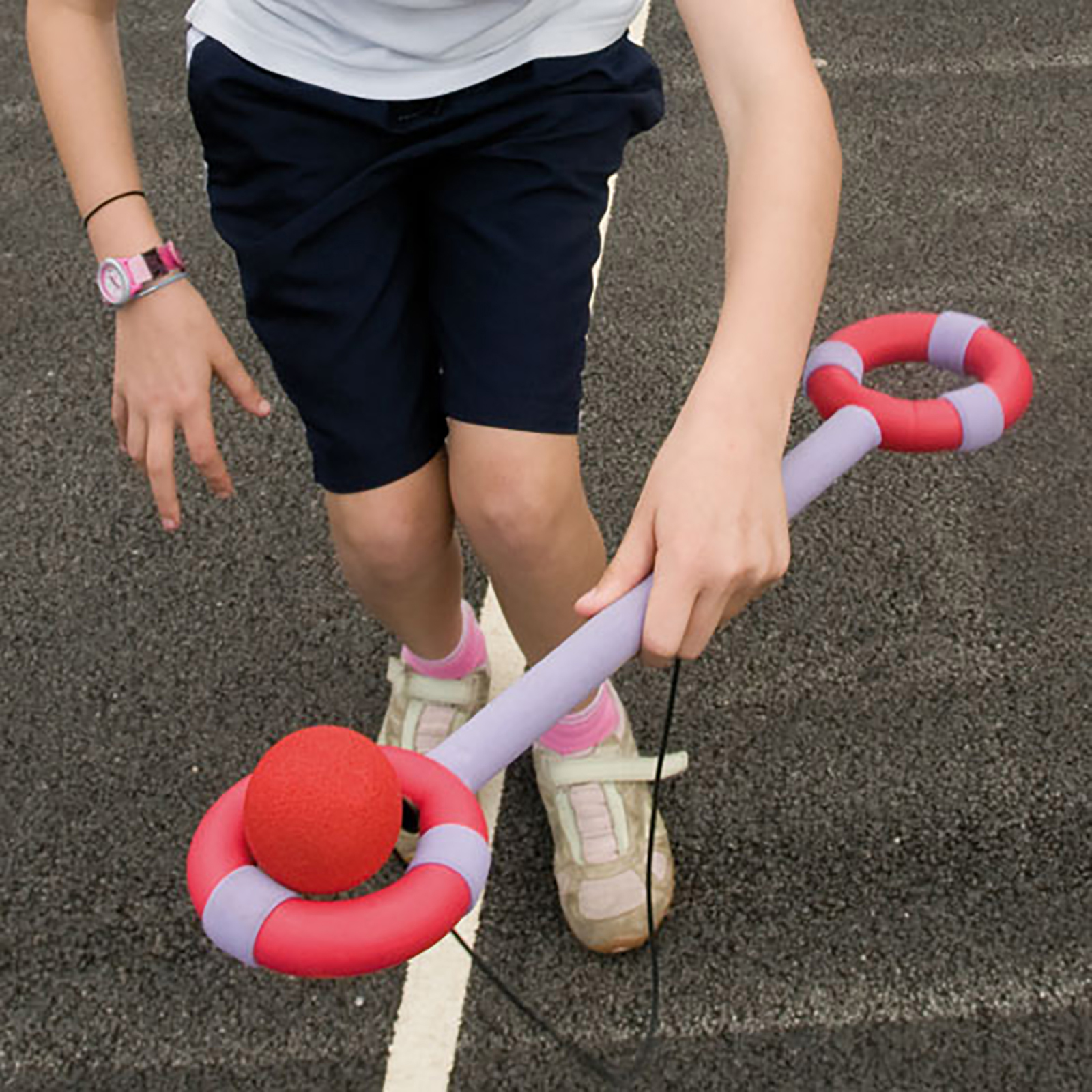 A development from the traditional game of Swinging Loop – with two catching rings for twice the fun!