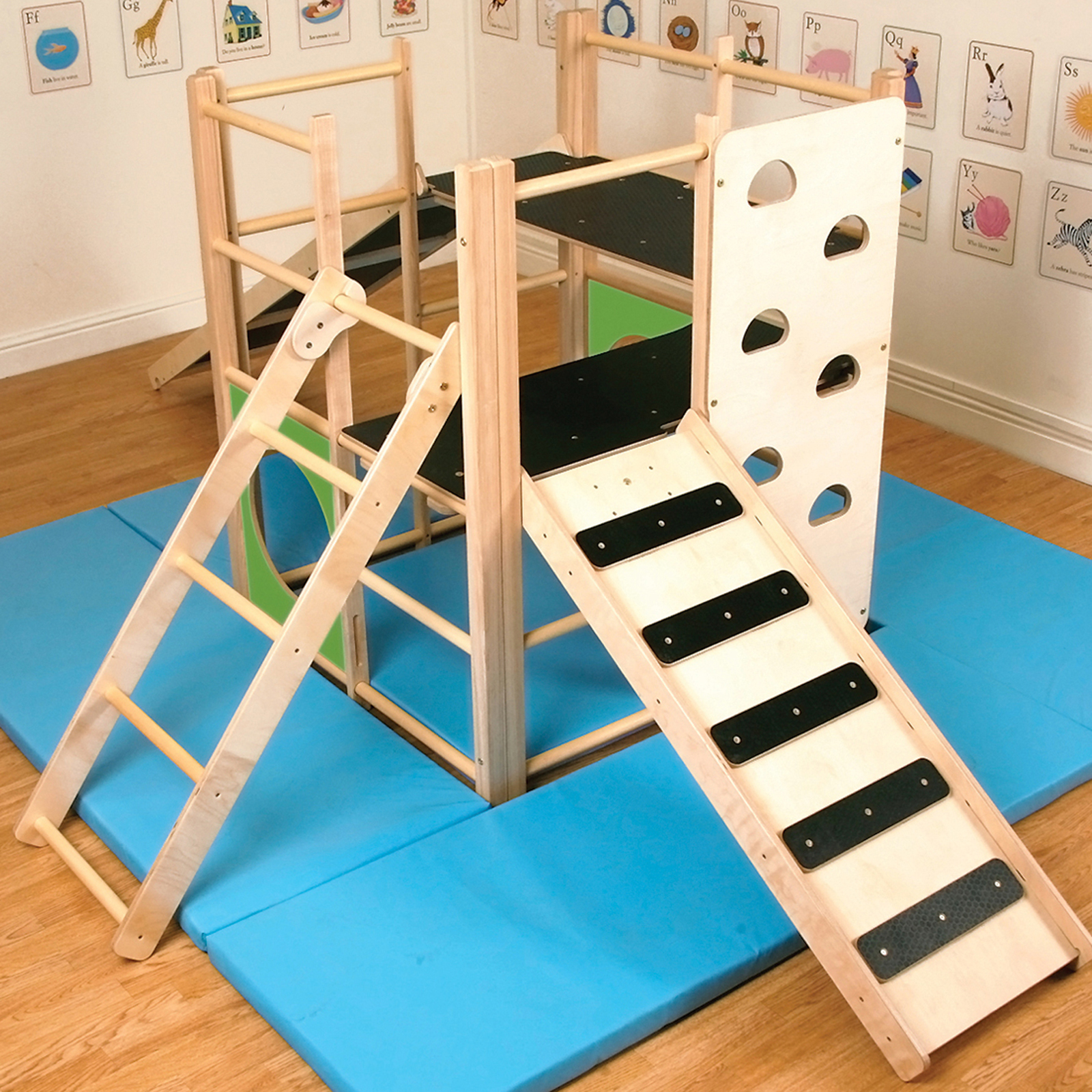 Set of 5 blue safety mats ideal for creating a safe one around a climbing frame or soft play area.