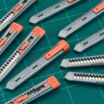 Small craft knife with snap-off blades for cutting and scoring card, also for cutting corrugated plastic sheet.