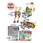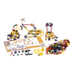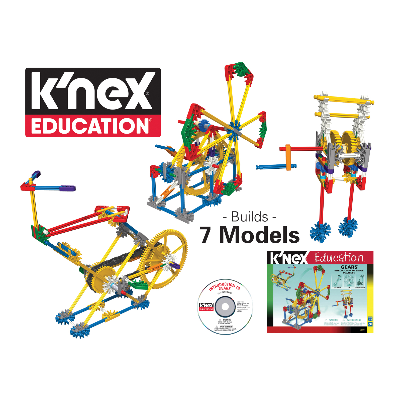 This set builds 7 models all together; egg beater, blender, chainsaw, record player, crank fan, car window and exercise bike