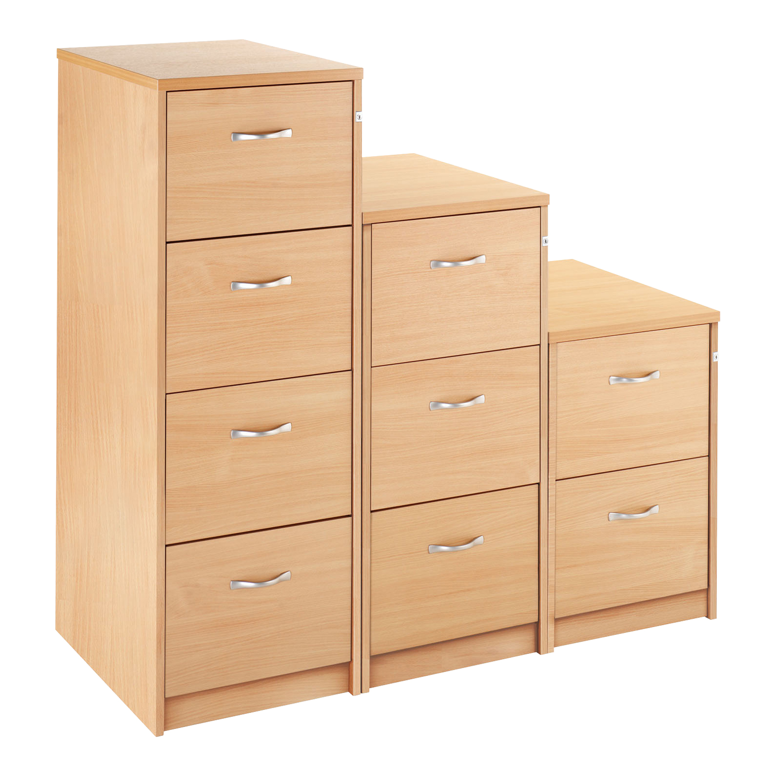 Lockable Wooden F-Cabinets 4 Drawers H1360mm Beech
