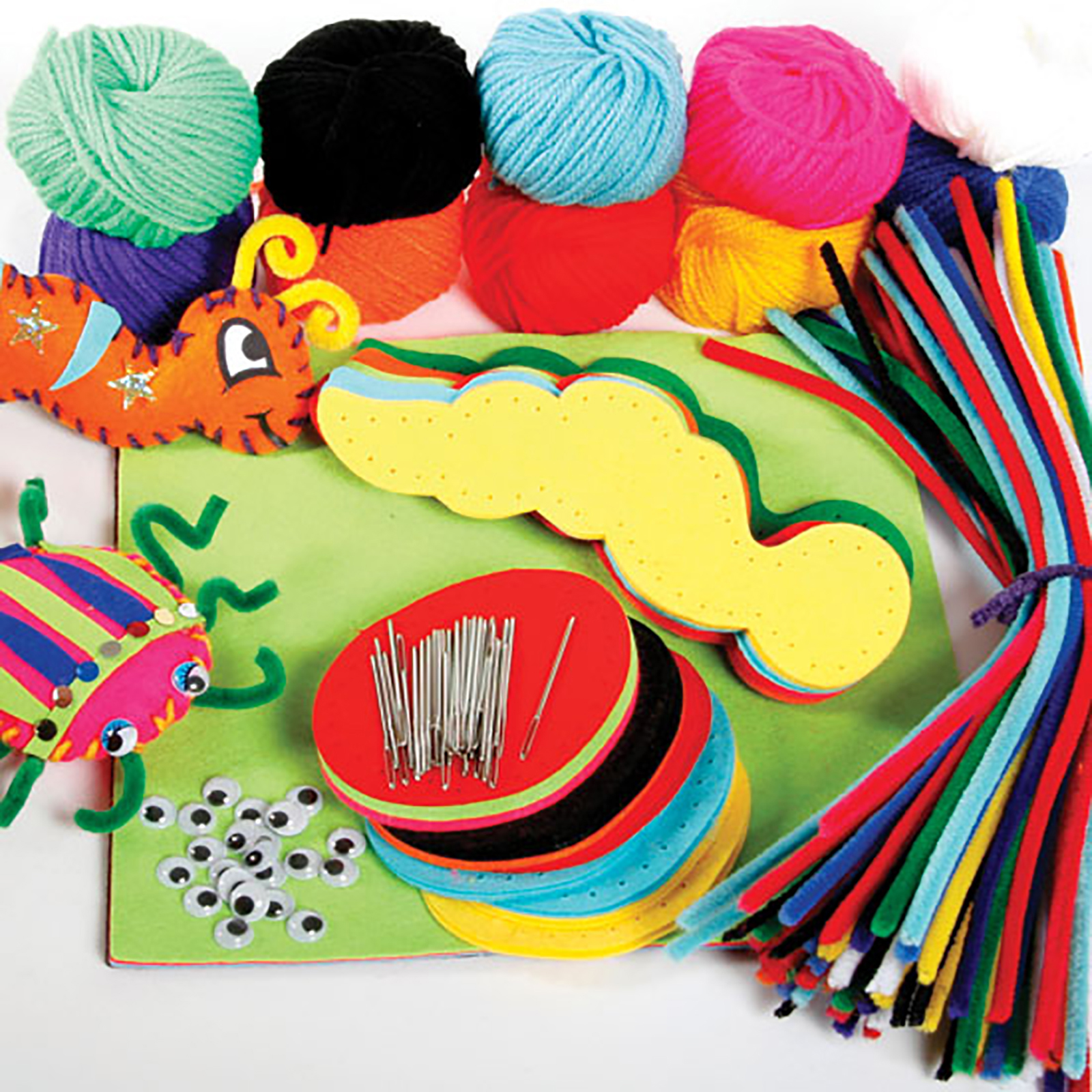 Create cute padded minibeasts with this complete sewing set.