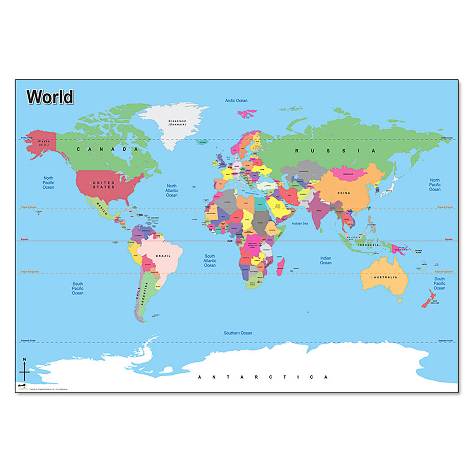 Continents and Oceans Map 80 x 60cm Vinyl