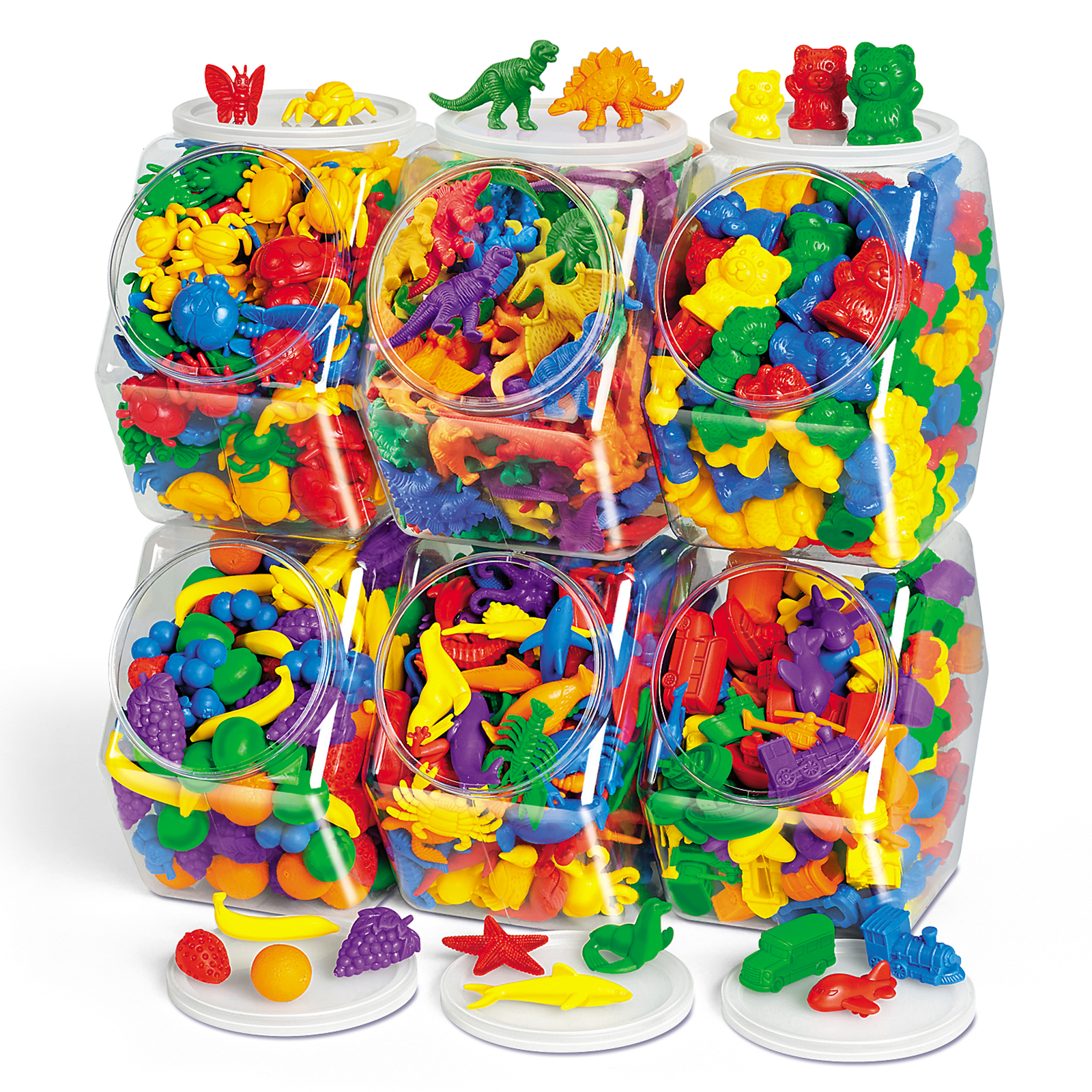 Six varieties include; Size & Colour Teddy Counters, Size & Colour Bug Counters, Fun Fruit Counters and Dinosaur Counters