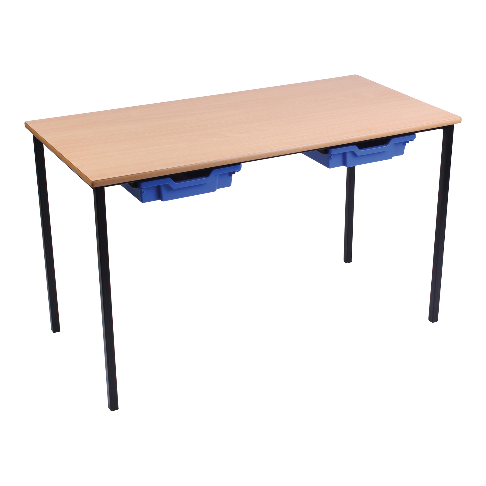 A table with tray storage ideal for the classroom. Providing storage space beneath the table to keep the tops tidy.