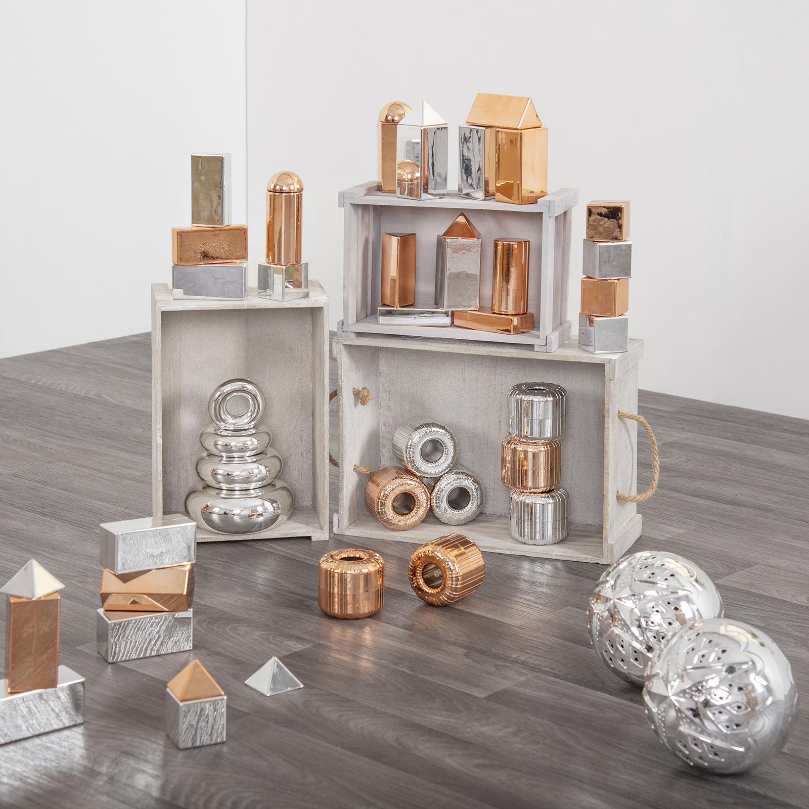 Mirrored Stacking Pebbles Silver 4pk