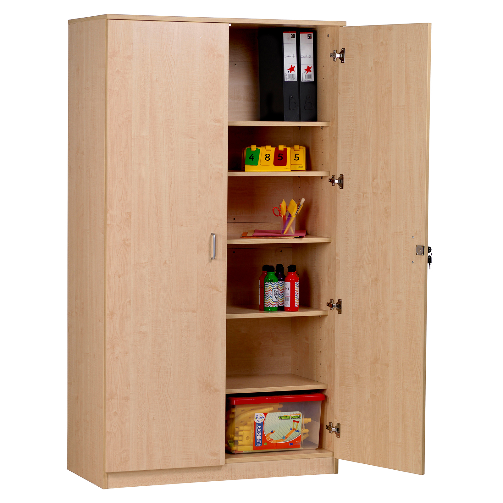 Made from maple melamine with solid beech features, our cupboards provide efficient storage for resources and other items.