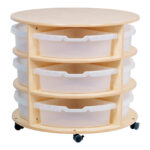 This circular storage unit provides easy access storage and is perfect centre piece for any room.
