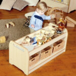 Easy access nursery storage unit for toddlers and children, featuring a mirror top which is ideal for exploratory play.