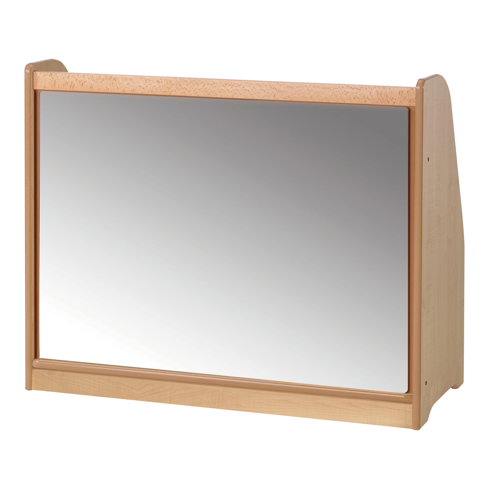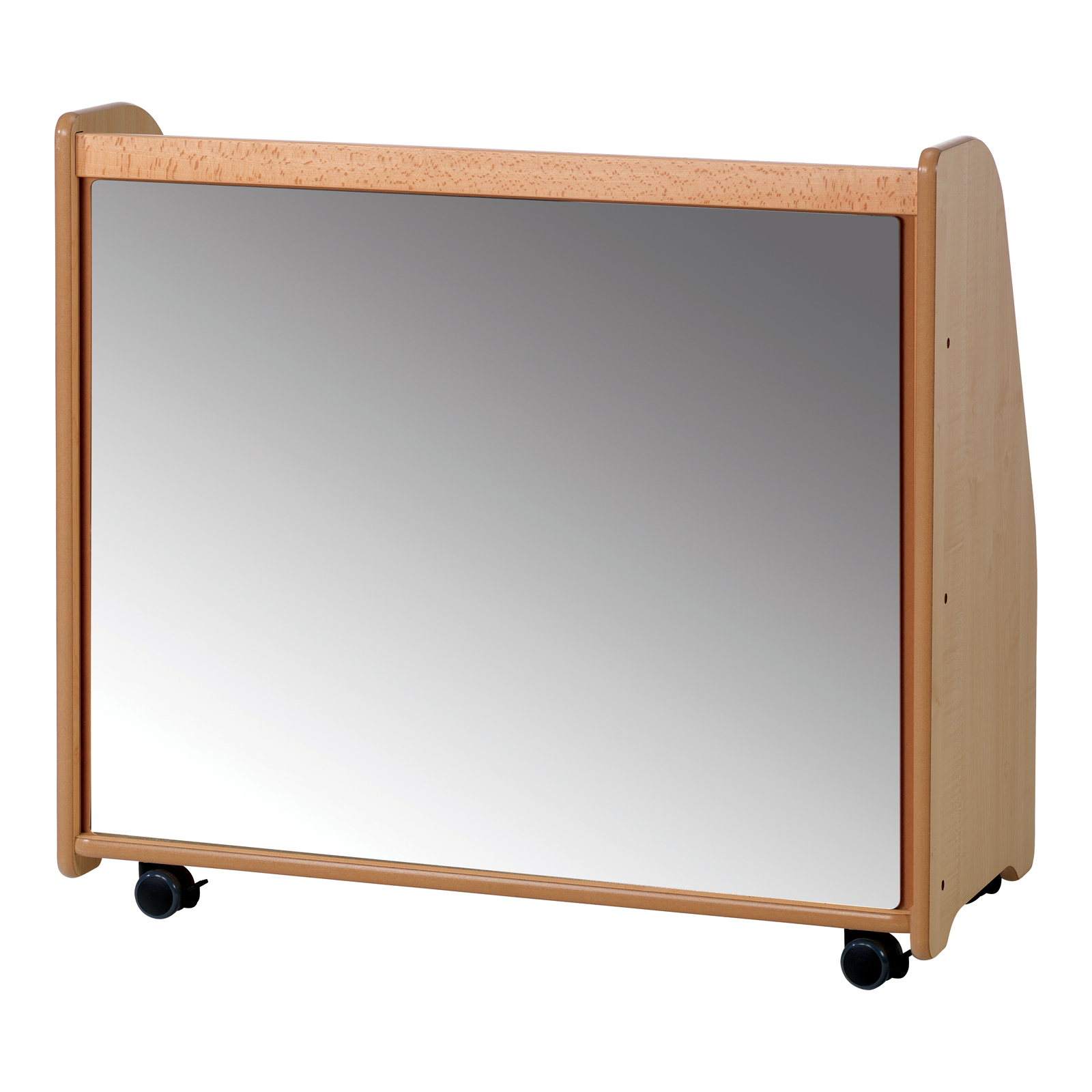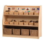 A storage trolley designed for early years schools and nurseries with a mirrored back. (Baskets not included.)
