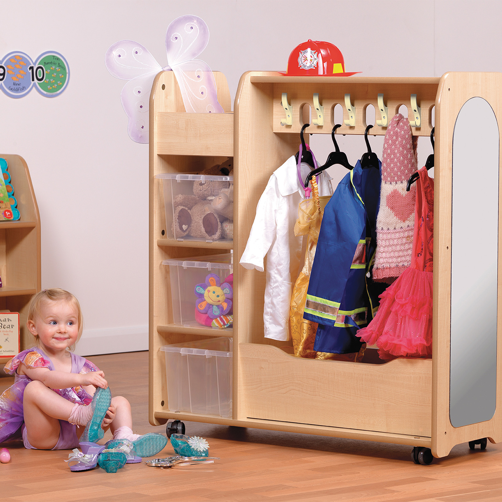 Portable dressing up unit ideal for role play and fancy dress clothing.
