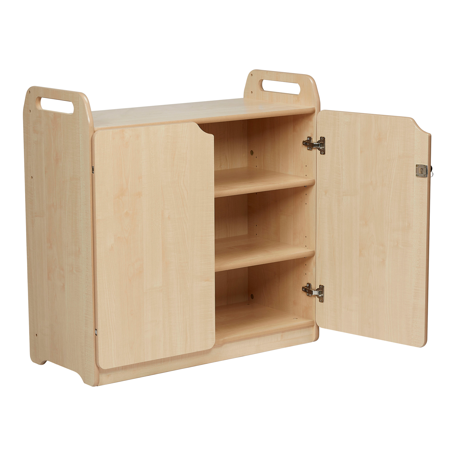 Lockable storage cupboard, providing easy access to contents.