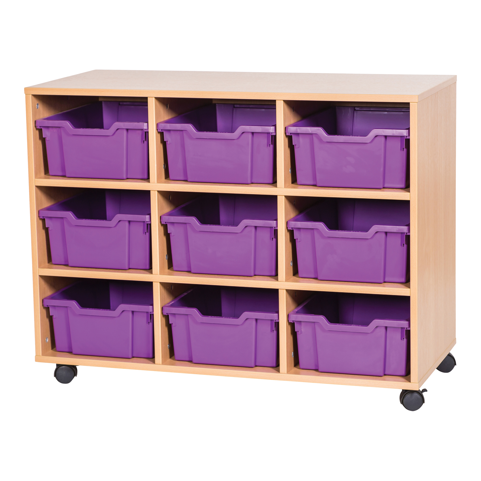 Available with a choice of carcass finishes and a choice of tray colours, this tray storage unit is a versatile solution, ideal for nursery or classroom storage.