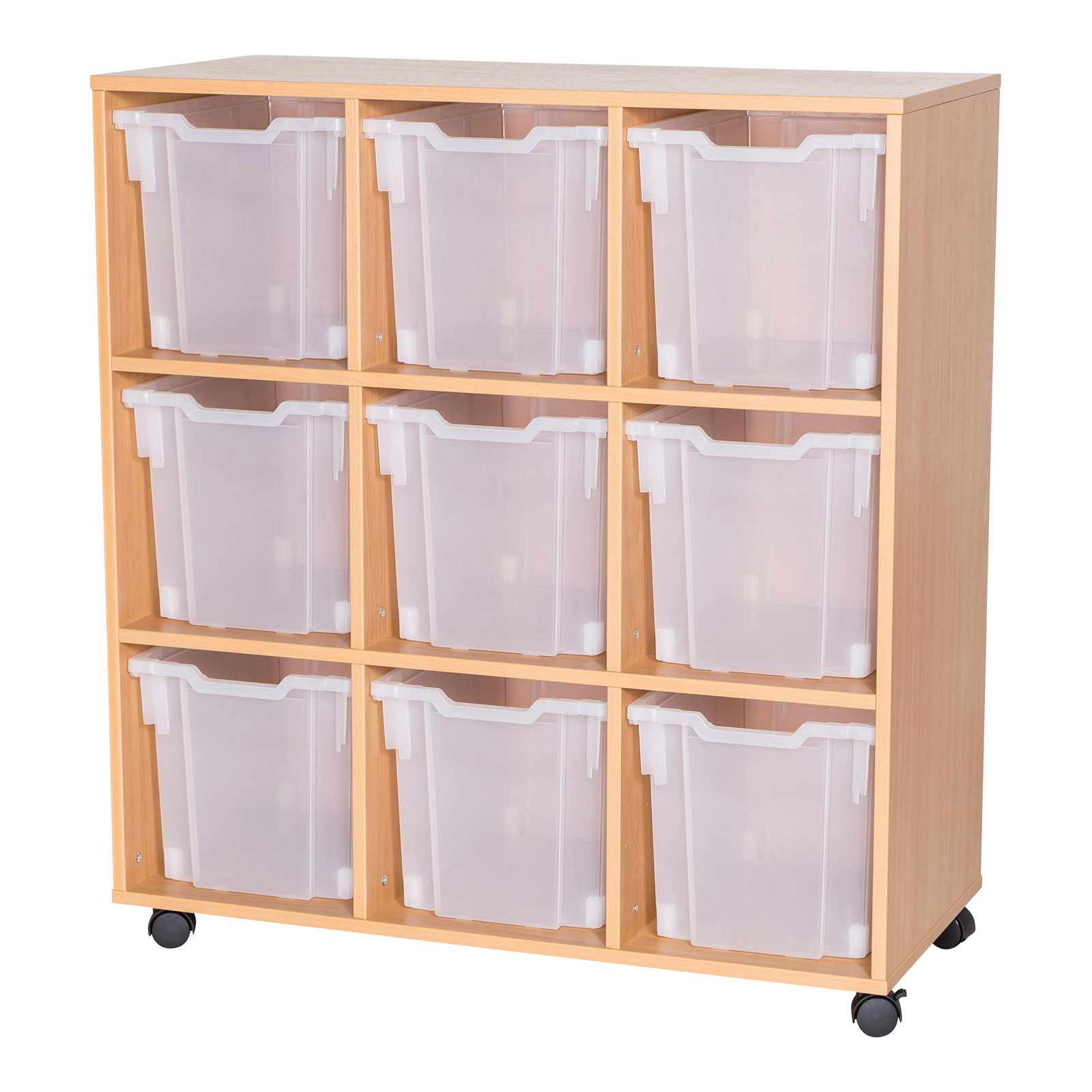 Featuring 9 jumbo trays in a choice of colours which are suitable for storing a wide variety of nursery or classroom resources.
