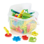 This set of brightly coloured plastic cutters and tools are suitable for use with most modelling materials.