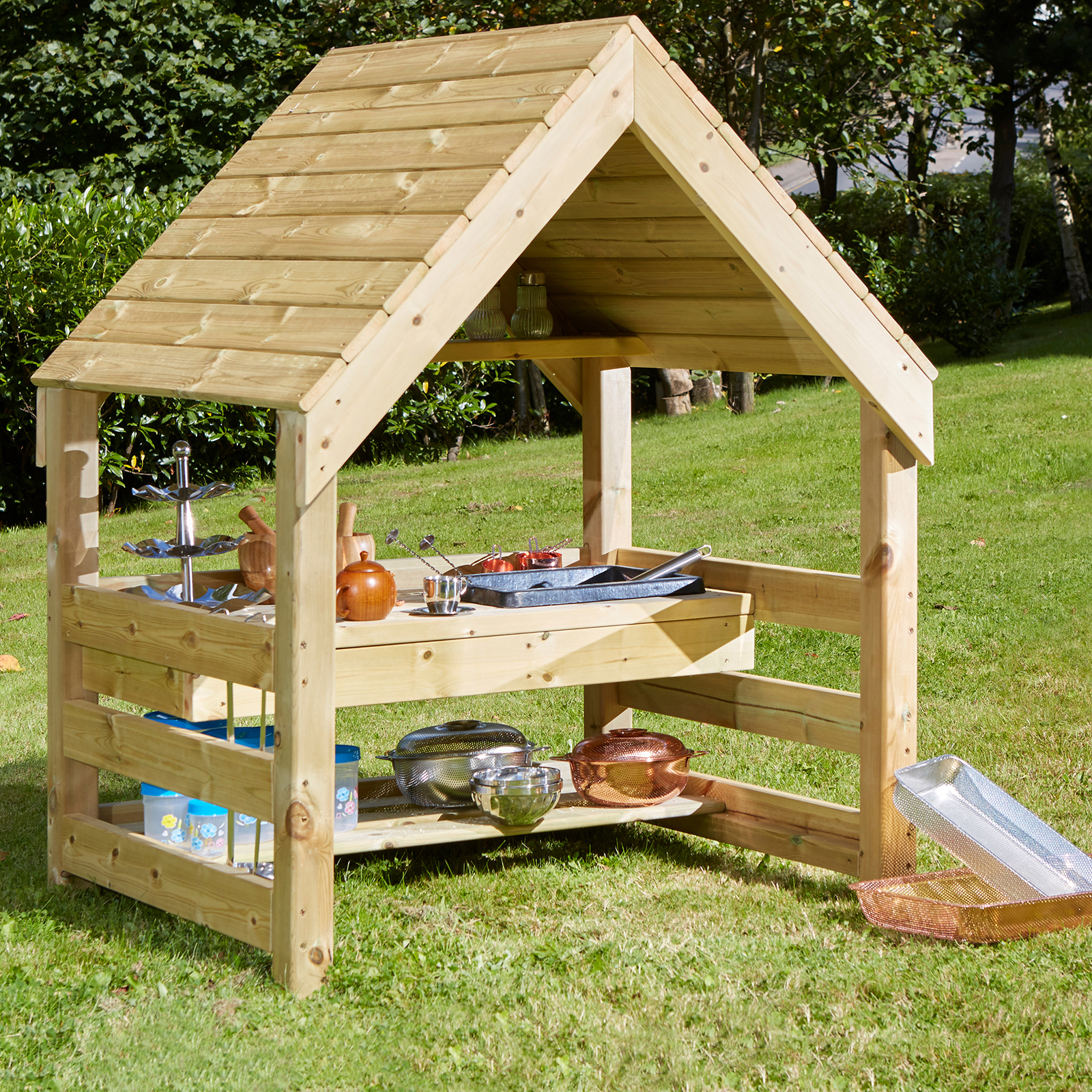 Roof provides shelter for play in all weather.